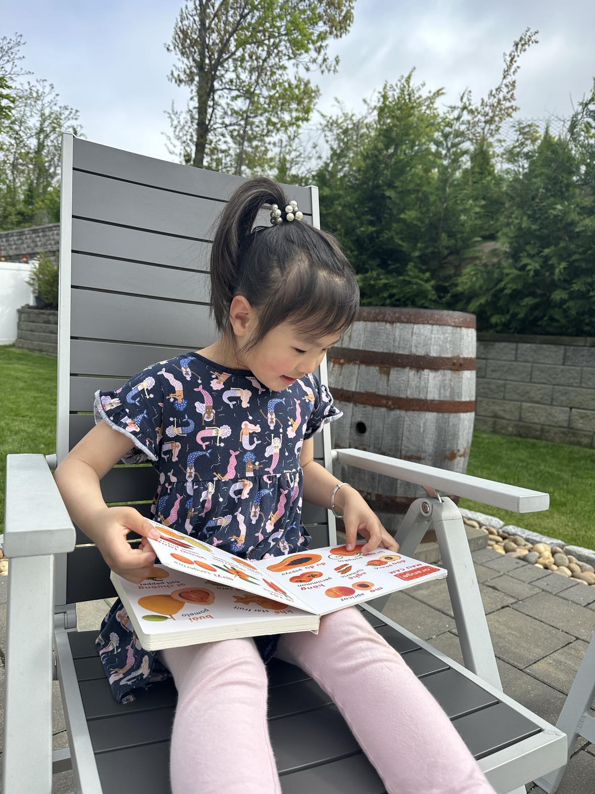 Read this book to my four-year-old niece and she was able to easily read the different food in the book. She enjoyed reading it as well as wanting me to repeatedly read it several times to her.